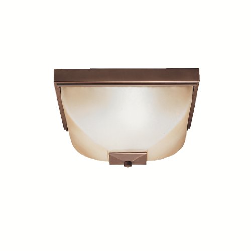 Kichler Lighting 9817OZ 2-Light Incandescent Benton Outdoor Ceiling Flush Mount, Olde Bronze with Light Umber Glass Review